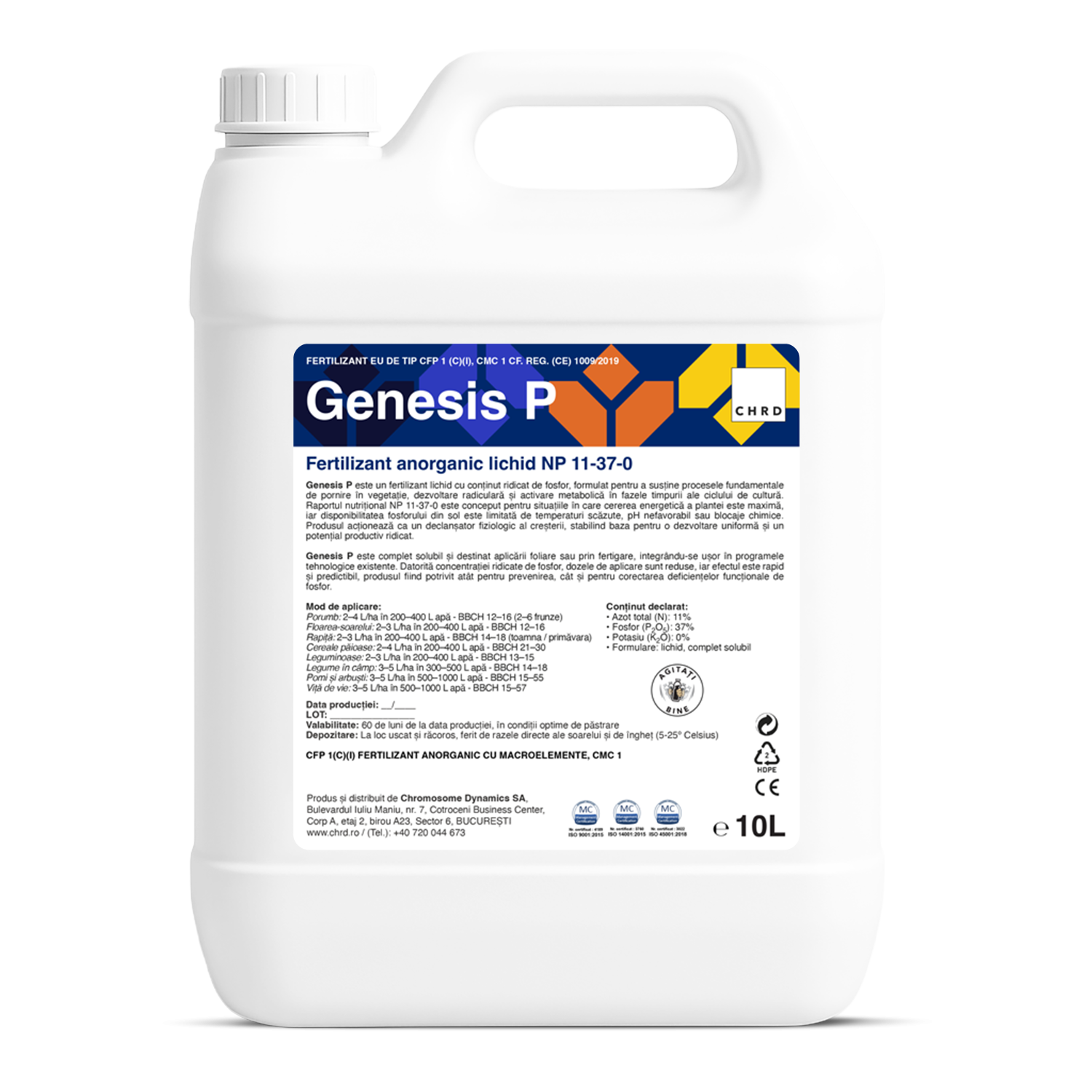 GENESIS P™ este complet solubil și destinat aplicării foliare sau prin fertigare, integrându-se ușor în programele tehnologice existente. Datorită concentrației ridicate de fosfor, dozele de aplicare sunt reduse, iar efectul este rapid și predictibil, produsul fiind potrivit atât pentru prevenirea, cât și pentru corectarea deficiențelor funcționale de fosfor.